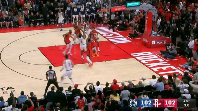 接下来火箭的进攻回合,则是直接把乌度卡按在地上揍了。同样的边线发球战术,全世界也都知道这球要给杜兰特。伦纳德紧贴杜兰特,虽然杜兰特通过申京的掩护甩开了伦纳德,但防守申京的小琼斯提前进行了换防,依旧死死挡住杜兰特,后者根本没有接球机会。